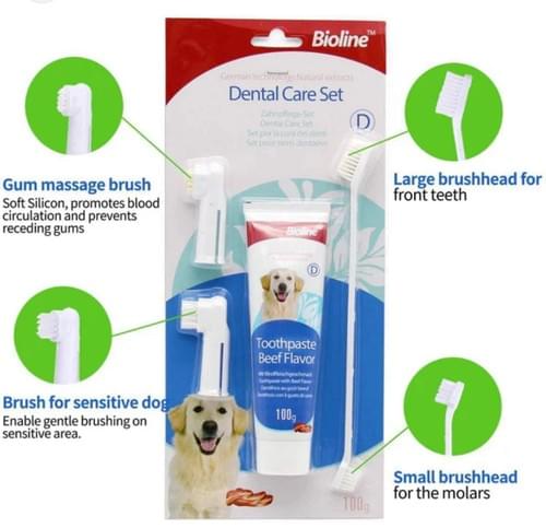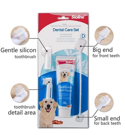This set is designed to help prevent tartar buildup and improve oral hygiene in pets.