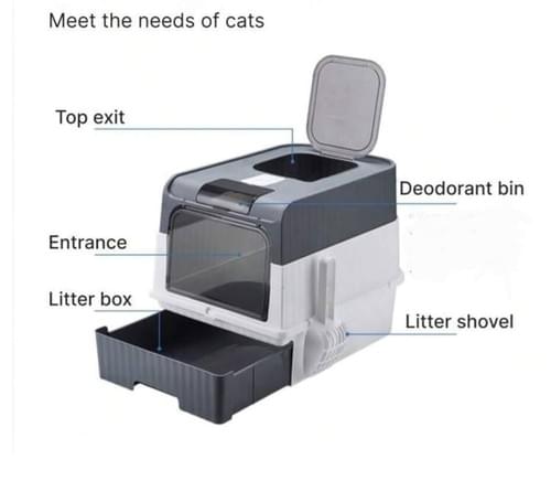 وفّر لقطتك بيئة نظيفة ومريحة مع صندوق الفضلات المغلق العصري، المصمم بعناية لتقليل الفوضى والروائح والحفاظ على نظافة المنزل. يتميز ببابين منفصلين للدخول والخروج، مما يمنع انتشار الرمل خارج الصندوق ويزيد من سهولة الاستخدام
