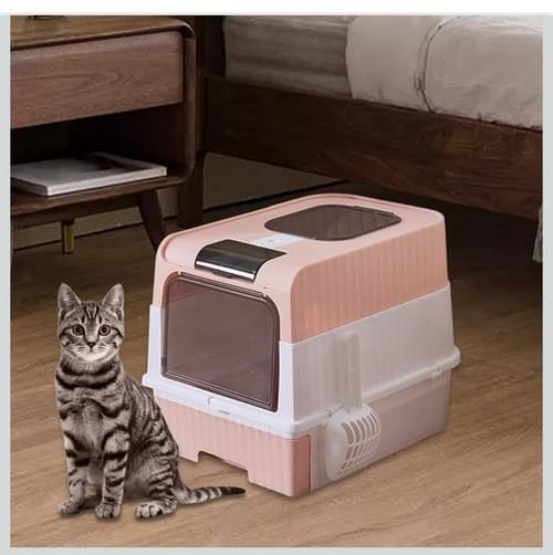 🐾 صندوق فضلات القطط المغلق ببابين وفلتر امتصاص الروائح