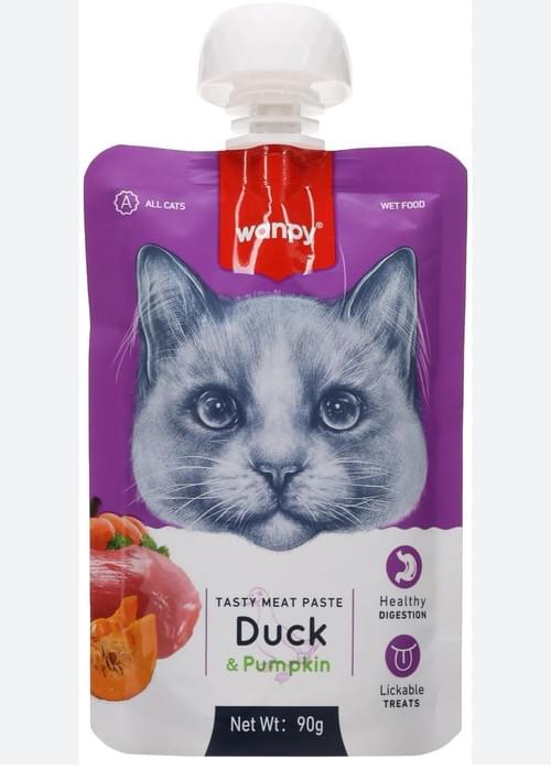 معجون اللحم الفاخر من وانبي بنكهتي البط والقرع أو السلمون والدجاج والجزر سيكون الخيار المثالي لقطتك